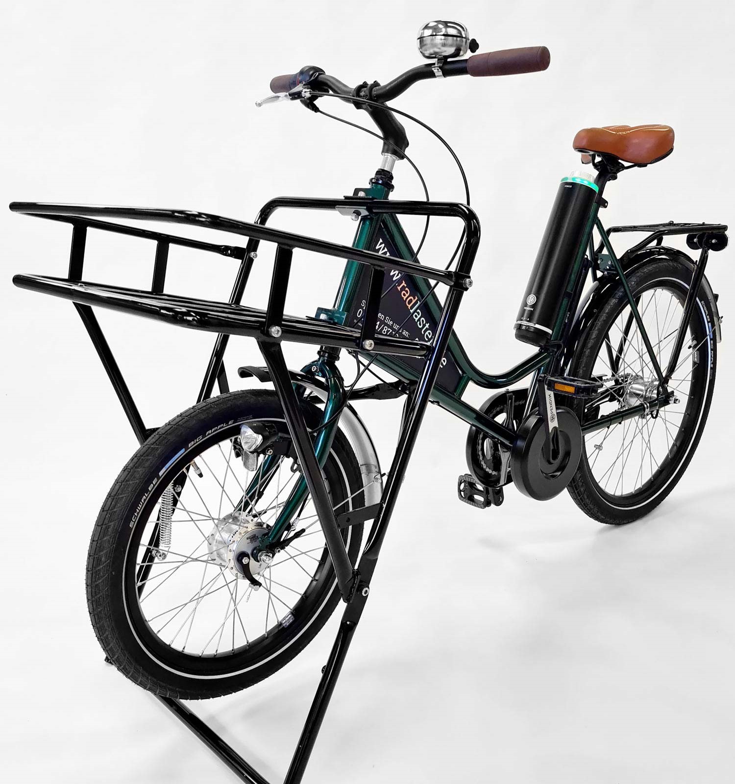 Ein verstärkter Stahlrahmen ermöglicht auf dem großräumigen, fest verbauten und stabilen Vorderrad-Lastenträger (Breite / Länge: 57x42 cm) eine Tragkraft von 50kg. Abgerundet wird das Konzept mit einem Hinterrad-Gepäckträger mit einer Tragkraft von 25kg.